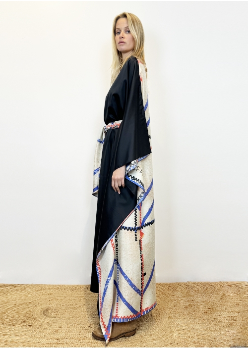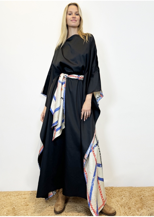Longue Robe noire & Patchwork ivoire